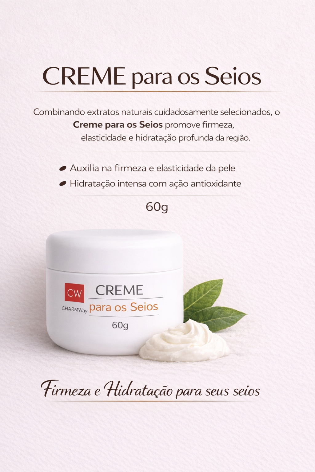 CREME ESPECIALMENTE FORMULADO COM ATIVOS, EMOLIENTES E HIDRATANTES, QUE DEVOLVE A HIDRATAÇÃO NECESSÁRIA PARA A DELICADA PELE DOS SEIOS.