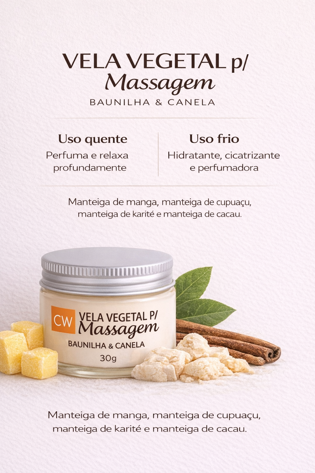 ACENDA O PAVIO E ESPERE A VELA QUEIMAR E DERRETER ATÉ OBTER ÓLEO SUFICIENTE PARA MASSAGEAR A ÁREA DESEJADA. APAGUE A CHAMA, DERRAME O ÓLEO SOBRE A PELE E INICIE A MASSAGEM.